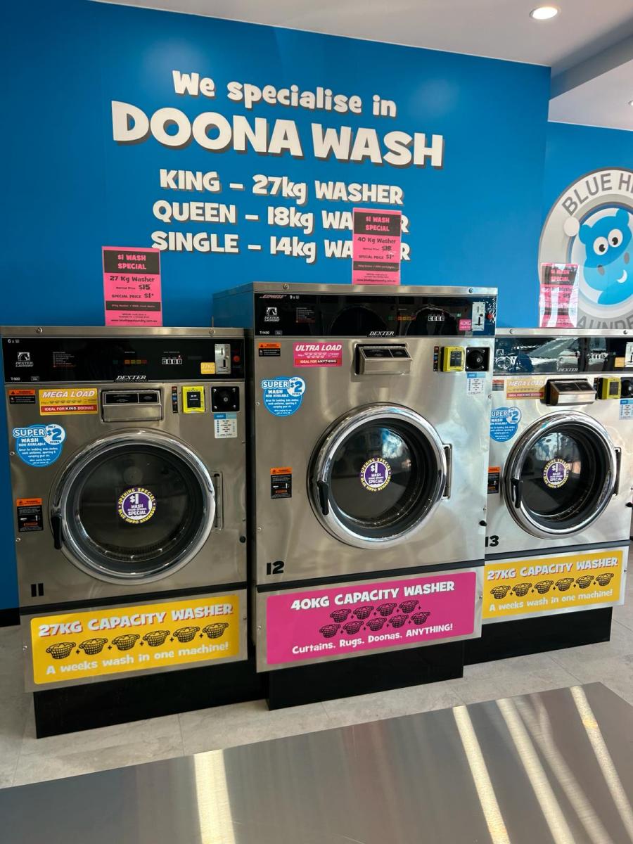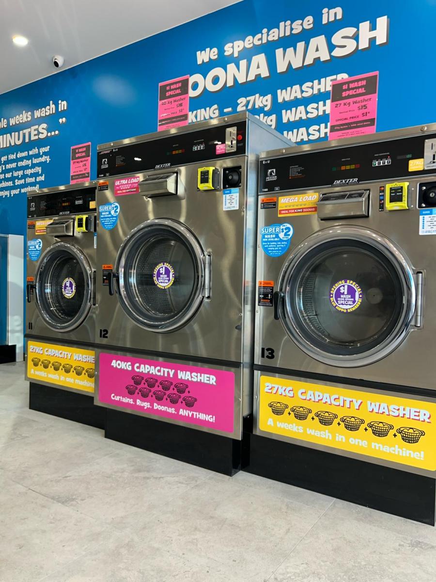 Large-capacity machines make this location ideal for families, shared households, and anyone washing doonas, blankets, or towels.